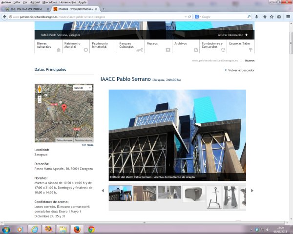En la página web: Patrimonio Cultural de Aragón, encontrarás un buscador de museos con una completa información de cada uno de ellos con el siguiente esquema: