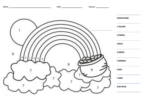 Teacher gives the students a worksheet to colour a rainbow.